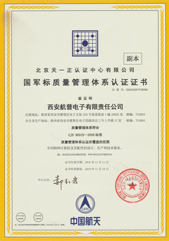 GJB9001B國軍標(biāo)質(zhì)量管理體系認(rèn)證證書