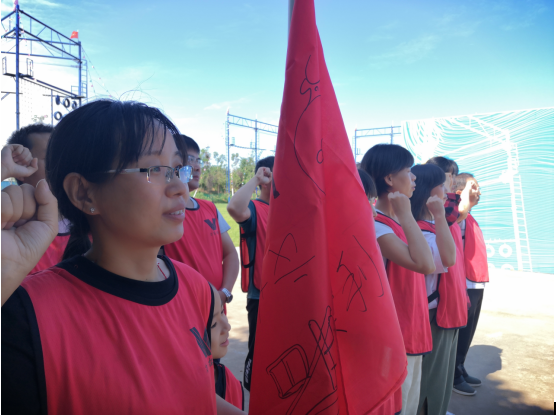 人員隨機(jī)分成兩隊(duì),指定隊(duì)長(zhǎng)、副隊(duì)長(zhǎng)、宣傳員、記錄員、后勤員等職位,各隊(duì)在隊(duì)長(zhǎng)的帶領(lǐng)下于規(guī)定時(shí)間內(nèi)完成各自的隊(duì)名、口號(hào)、隊(duì)歌,組建戰(zhàn)隊(duì)。