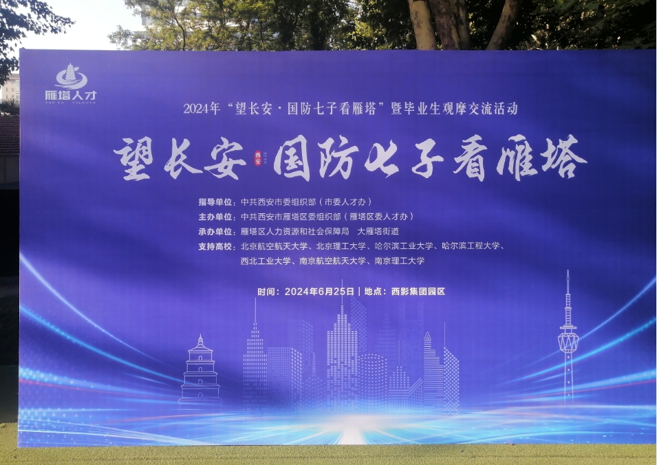 2024年6月25日,我司參加了在西安市雁塔區(qū)舉辦的“望長安——國防七子看雁塔” 暨畢業(yè)生觀摩交流活動。本次活動由中共西安雁塔區(qū)委組織部主辦,吸引了來自“國防七子”(北京航空航天大學、北京理工大學、哈爾濱工業(yè)大學、哈爾濱工程大學、西北工業(yè)大學、南京航空航天大學、南京理工大學)的優(yōu)秀學子,場面熱烈,互動積極。